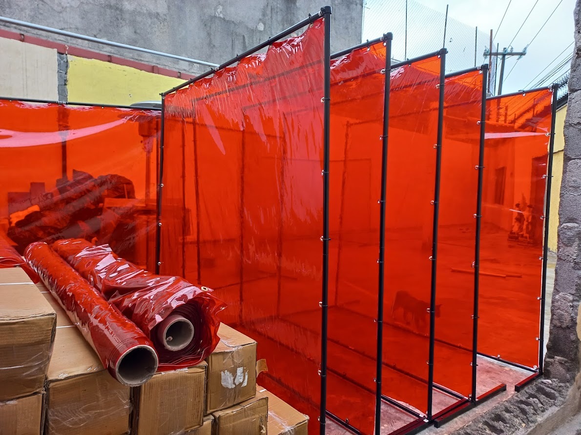 | Cortina naranja para soldar - Rollo | Cortina naranja para soldar - transparente - roja - antichispa - Rollo de 1.83 mts de ancho x 22.86 mts de largo. Util para procesos de soldadura MIG, TIG, Corte por plasma. Protege de los rayos UV ultra violeta que se genera el arco de soldadura | $14,200+IVA | ORDENAR |