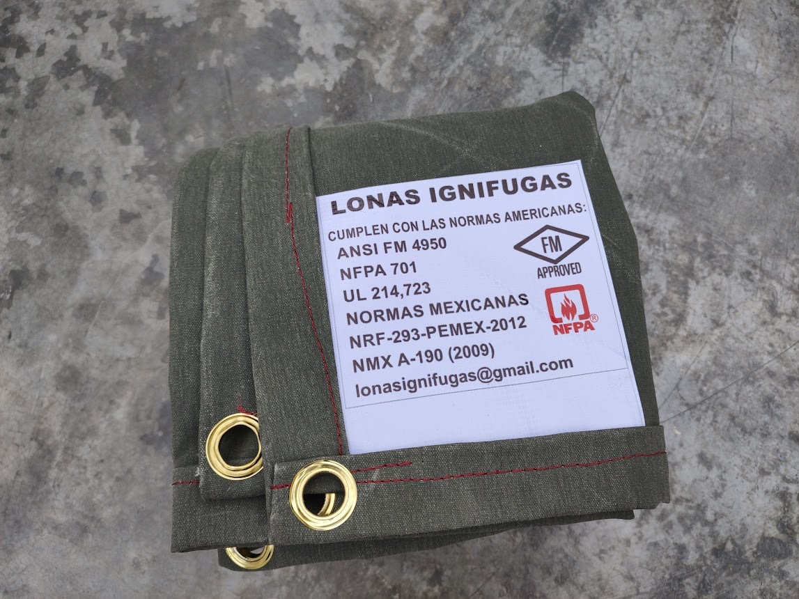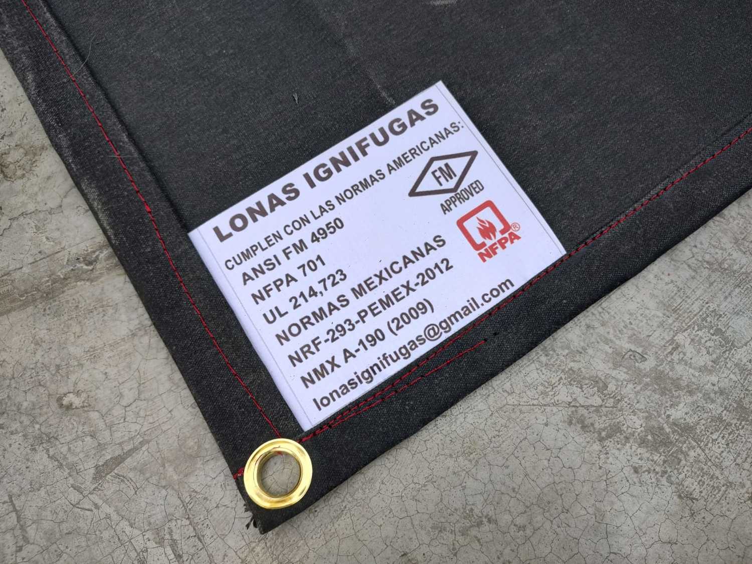 Ficha tecnica de lona ignifuga - Lona Ignifuga para soldar - Lona Ignifuga para soldadura - Lona Ignifuga para soldador - Lona Ignifuga para soldadores - Lona Ignifuga con la NORMA ANSI FM 4950 - NORMA NFPA 701 - NORMA UL 214, 723